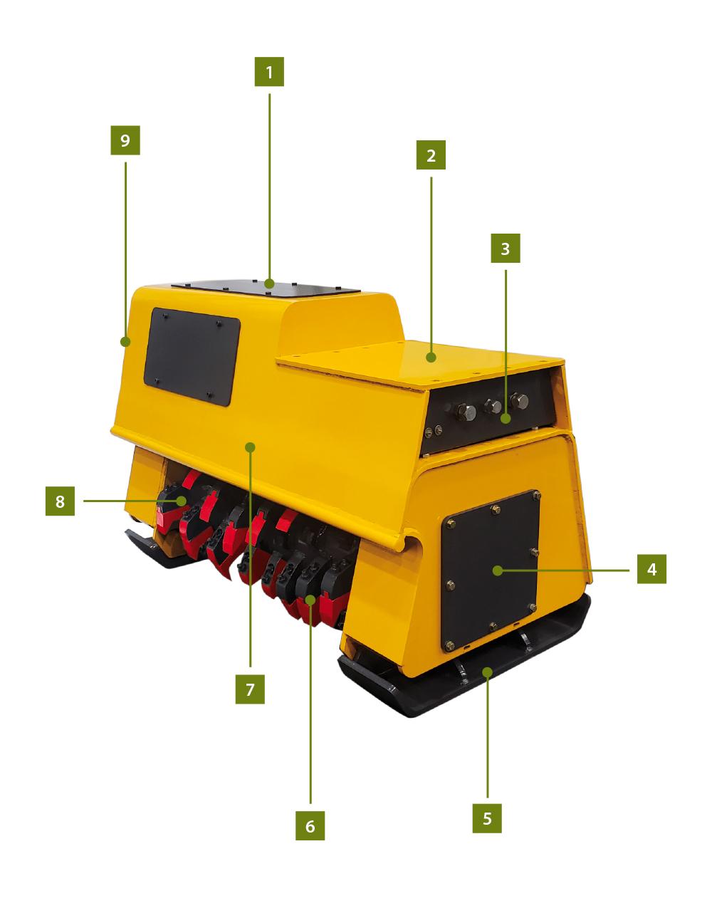 3. Conexiones hidráulicas centralizadas y puertos de engrase visibles para el operador durante el uso